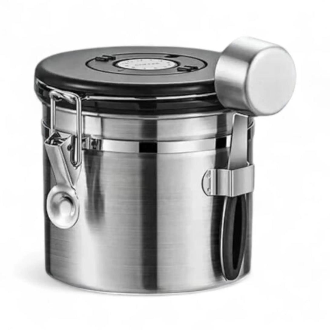 Preserve o aroma e a crocância dos seus grãos com elegância — o Pote Hermético Gourmet com trava metálica e colher em aço inox mantém café, cereais e farinhas protegidos da umidade, enquanto deixa sua bancada com um visual sofisticado.